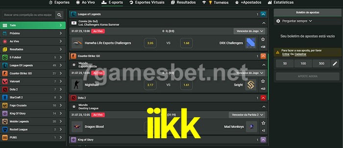 O iikk oferece uma grande seleção de opções de apostas em e-sports com probabilidades competitivas